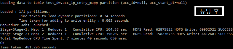 실제 운영 환경에서는 제가 디멘전 테이블 아키텍처 변경과 데이터 입력 작업만 수행하고, 실제 운영상의 쿼리 변경 작업은 운영 담당자가 진행하여 상세한 튜닝 결과는 확인하지 못했습니다. 운영 클러스터에서는 튜닝 전 약 2시간 정도 수행되는 쿼리가 튜닝 후에는 수행 시간이 약 7분 정도로 단축되었다고 합니다.