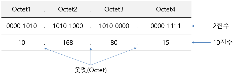 일반적으로 우리가 데이터로 저장하고 관리하는 IP주소는 옷뎃으로 구분된 10진수로 된 문자열 형태(예: 10.168.80.15)입니다.