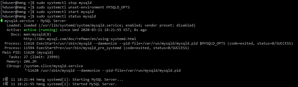 > sudo systemctl unset-environment MYSQLD_OPTS