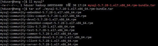 > tar xvf mysql-5.7.28-1.el7.x86_64.rpm-bundle.tar