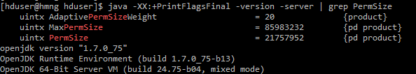 > java -XX:+PrintFlagsFinal -version -server | grep PermSize