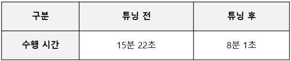 우선 이번 튜닝의 결과는 아래와 같습니다.
