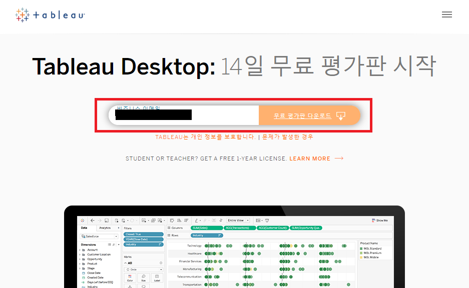 URL : https://www.tableau.com/ko-kr/products/desktop/download?signin=47cc9ac0f8435895c744899af5d60d2e