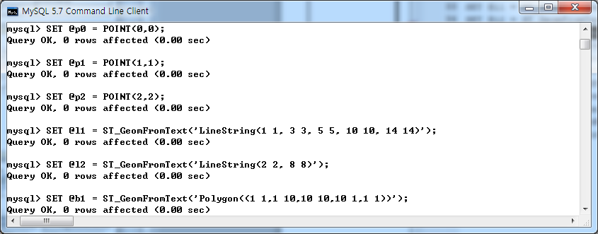 SET @g1 = 'POINT(10 10)';