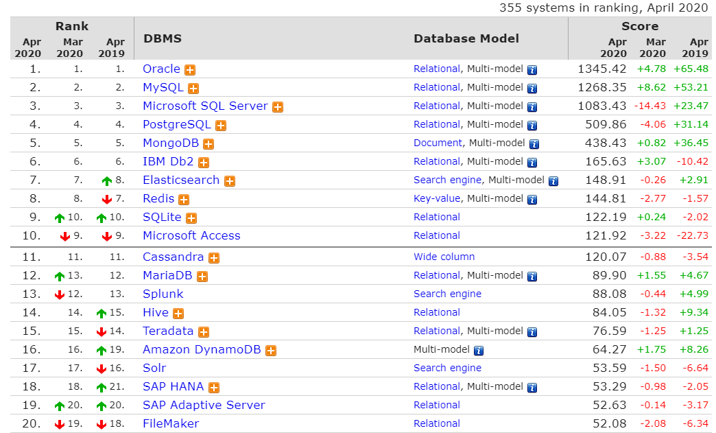 오라클에서 제공하는 주요 힌트는 아래와 같습니다.