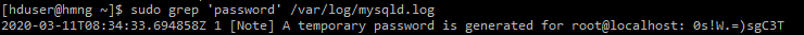 참고로, 임시 비밀번호는 아래와 같이 my.cnf에서 log-error로 설정한 에러로그 파일에서 확인 가능합니다.
