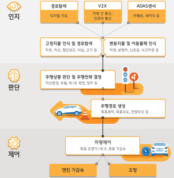 | 설명 | 운전 중 도로 인프라 및 다른 차량과 통신하면서 교통상황 등의 정보를 교환하거나 공유하는 기술 V2V, V2P, V2N, V2I, V2C 등이 존재함. |